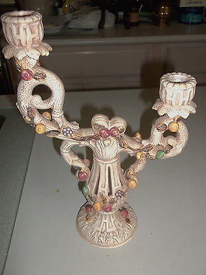 Vintage Capodimonte Like Two Armed Candelabra With Fruit