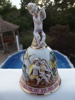 Vintage R Capodimonte Hand Painted Porcelain Naked Cherub Playing Flute Bell
