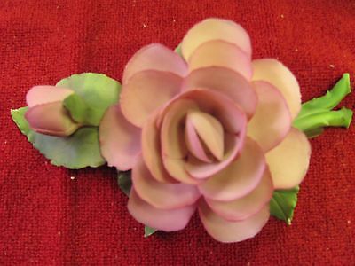 Porcelain Capodimonte Italy, Pink Rose with Bud