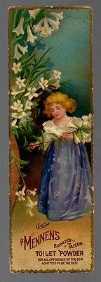 Newark, NJ late 1800's Mennen's Talcum Toilet Powder bookmark trade card