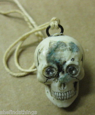 Title (ebay affiliate link): Vintage Gumball Celluloid Rhinestone Halloween Skull Metal Loop Charm Prize CJ