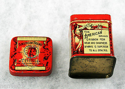 Title (ebay affiliate link): TYPEWRITER RIBBON TIN------------AMERICAN BRAND--INDIANS, SCENES ON 4 SIDES