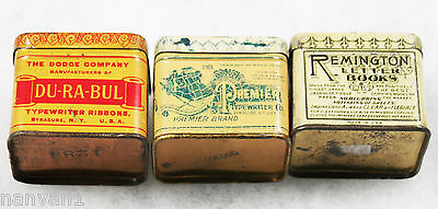 TYPEWRITER RIBBON TINS---------3 RECTANGULAR TINS: PREMIER, REMTICO & DU-RA-BUL