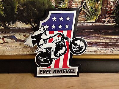 EVEL KNIEVEL MOTORCYCLE RIDER USA 1 EMBOSSED METAL SIGN HARLEY SHOP GARAGE.