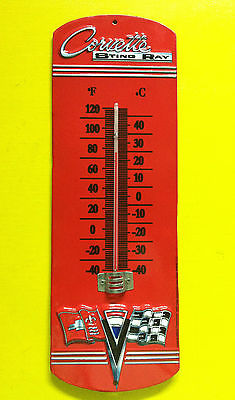 CHEVROLET CORVETTE GM DEALER THERMOMETER EMBOSSED METAL AMAZING STING RAY!
