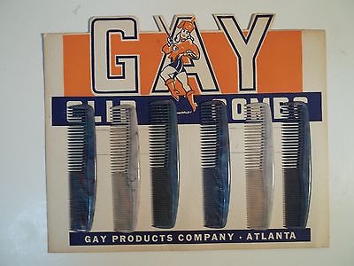VINTAGE GAY PRODUCT STORE DISPLAY 6 PLASTIC COMBS ATLANTA RETRO STOCK GAY KITSCH