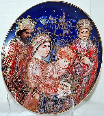 Christmas Plate by Edna Hibel 1986 The Gifts Of The Magi Gold Accents