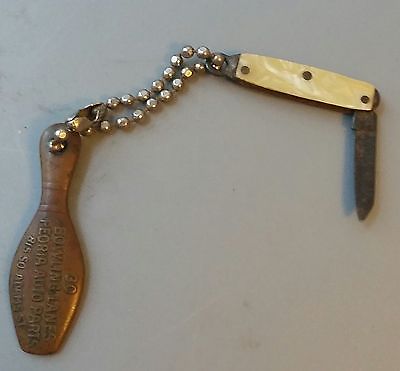 Vintage 1953 30 Bowling Lanes Peoria Auto Parts Bowling Pin & Knife Keychain