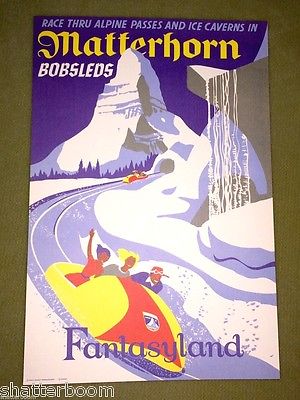 DISNEYLAND Disney ATTRACTION POSTER - MATTERHORN BOBSLEDS Fantasyland 12x18 NEW