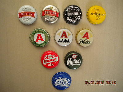 COLLECTIBLE SET OF 10 CROWN GREEK BEER BOTTLE CAPS PART 1!!!