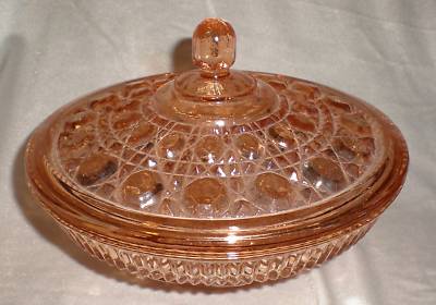 WINDSOR FEDERAL Button Cane Pink Depression Glass Bow