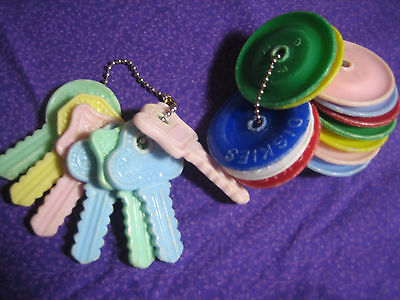 Vintage Baby Teething Keys & Disks Rings On Beaded Chains Free Shipping