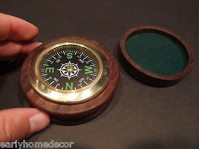Title (ebay affiliate link): Antique Style 3" Solid Wood Brass Pocket Navigational Compass