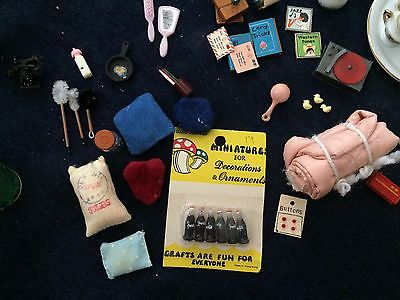 Antique vintage dollhouse miniatures LOT porcelain dolls tea set etc