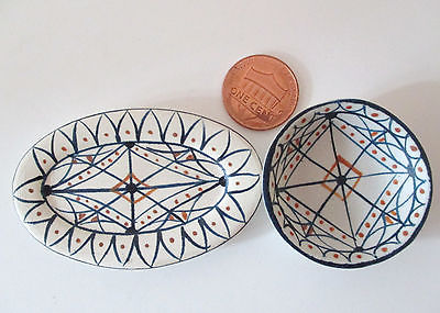 Vtg Antique French Quimper? Doll House Bowl Platter Blue Geometric Set Lot