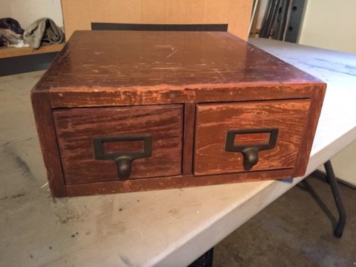 Title (ebay affiliate link): Vintage Library Index Card 2 Drawer File Cabinet Double Recipe Holder Box