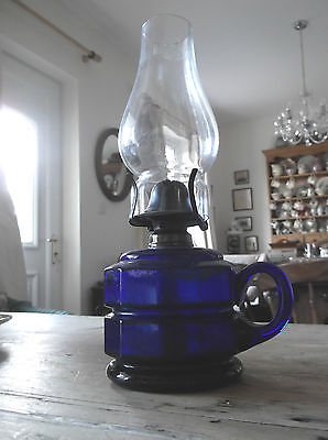 Title (ebay affiliate link): ANTIQUE OIL FINGER LAMP - BRISTOL BLUE - 11 1/4" HEIGHT -