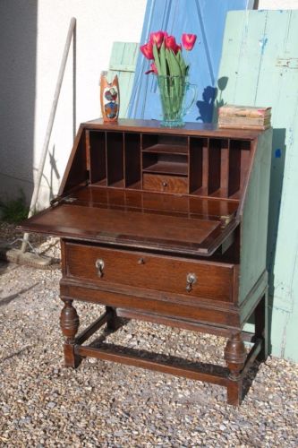 Title (ebay affiliate link): Vintage Bureau Art Deco Writing Desk Solid Oak Leather Top 1930's Rustic Chic