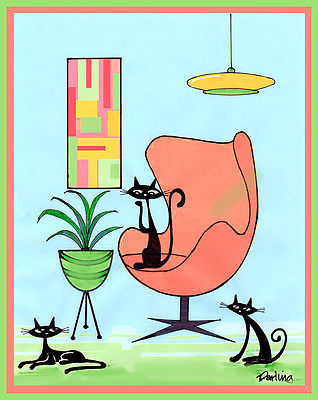 Title (ebay affiliate link): Eames Era Egg Chair 50's Party Cats 8x10 New Darling Black Cat 2015 Ltd Ed