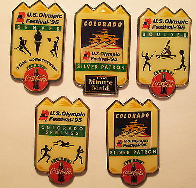 Title (ebay affiliate link): Set of 5 Coca-Cola lapel pins - 1995 US Olympic Festival,Colorado - Minute Maid