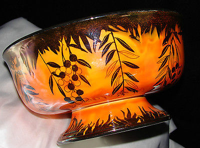 Title (ebay affiliate link): 1920'S CROWN DUCAL ORANGE LUSTRE BOWL BLACK BRAZILIAN RED PEPPER TREE