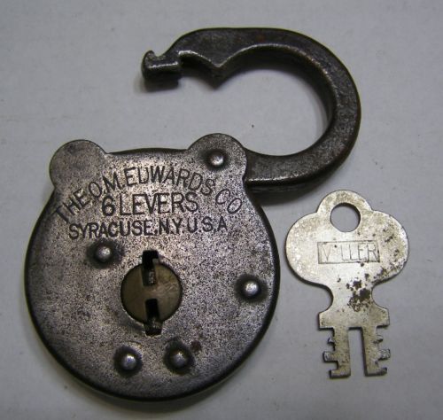 O.M. Edwards 6 Levers Vintage Lock-Steel Padlock w/Key vb26