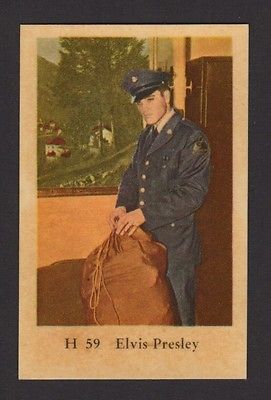Title (ebay affiliate link): 1961 VINTAGE SWEDISH/DUTCH H SET MOVIE STAR GUM CARD #H 59 ELVIS PRESLEY ARMY