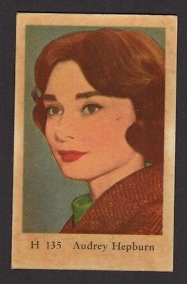 Title (ebay affiliate link): 1961 VINTAGE SWEDISH/DUTCH H SET MOVIE STAR GUM CARD #H 135 AUDREY HEPBURN