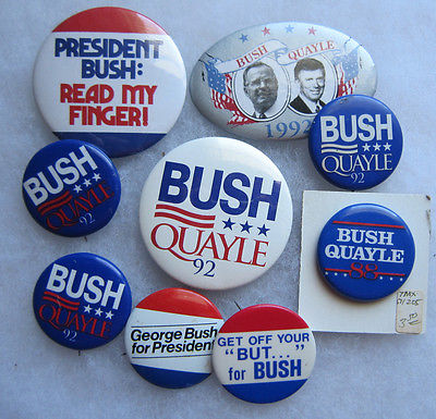 Title (ebay affiliate link): (9) Vintage 1988-1992 George H W Bush, Bush-Quayle Campaign Buttons