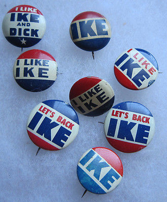 Title (ebay affiliate link): (8) Vintage 1952 IKE, Ike & Dick, I Like Ike Campaign Buttons