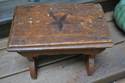 ANTIQUE OLD SHABBY PRIMITIVE COUNTRY HANDMADE WOOD STOOL STAR INLAY