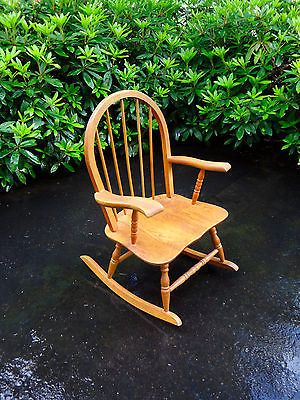 Title (ebay affiliate link): VTG OAK WOOD WINDSOR CHILDS CHILDRENS KIDS DOLL BEAR SEAT ROCKING ROCKER CHAIR