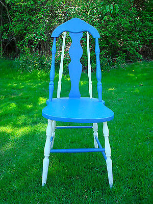 VTG NAUTICAL WINDSOR BLUE WHITE ARROW BACK COTTAGE FARMHOUSE COUNTRY SIDE CHAIR