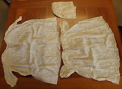 French made 2 BABY GOWN & Quaker HAT bonnet use for Antique bisque Doll