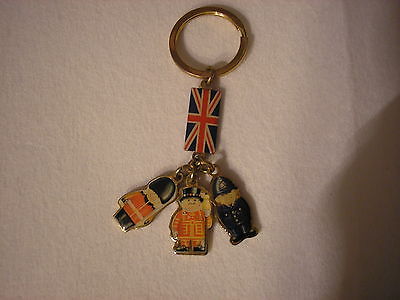 VINTAGE ENGLISH FLAG KEY RING WITH BOBBIES AND SOLDIER GUARDS