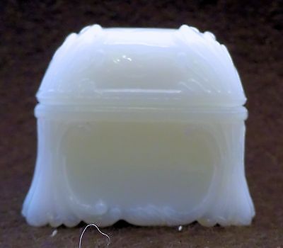 MILK GLASS RECTANGULAR COVERED SCROLL WORK OPEN SALT OR STAMP BOX ?? (BG976)
