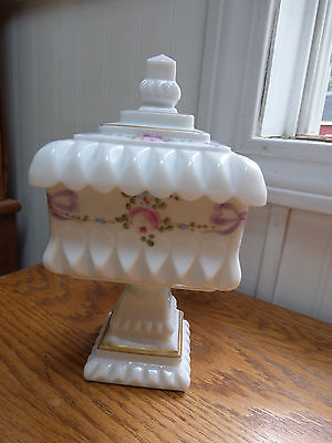 Title (ebay affiliate link): Vintage painted with flowers milk glass covered candy dish