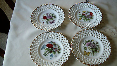 FOUR MILK GLASS LACE EDGED EDMUNDO SIGNED UCAGCO DECORATIVE PLATES
