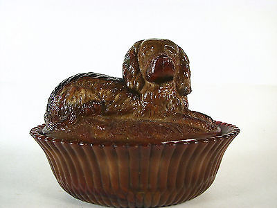 Title (ebay affiliate link): NMGCS 1999 Commemorative Chocolate Milk Glass Spaniel Dog Covered Dish