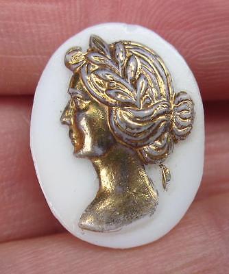 Antique Vintage Gold Luster MILK GLASS CAMEO LADY PICTURE BUTTON