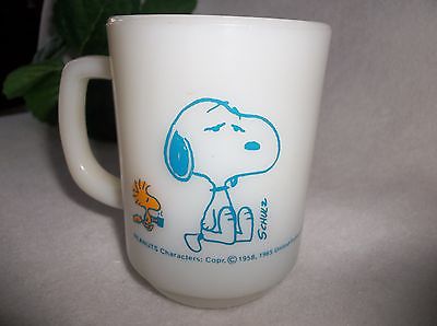 VINTAGE SNOOPY ANCHOR HOCKING FIRE-KING MILK GLASS COFFEE MUG 1965 D HANDLE G