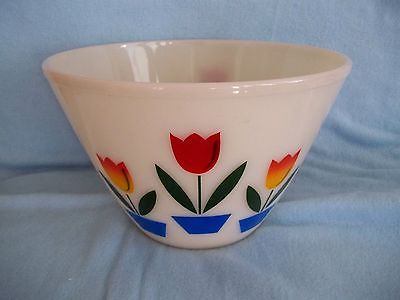 Fire King Ivory Milk Glass Large Tulip Mixing Bowl 9.5" W x 6"H Fab Graphics!