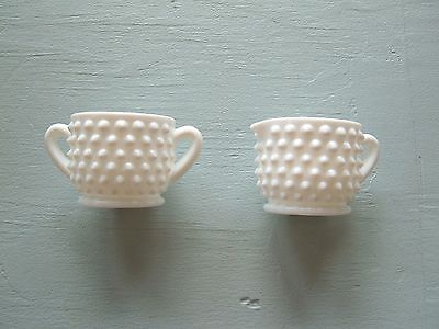 Small Vintage Milk Glass Hobnail Sugar & Creamer Set