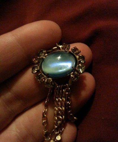 Title (ebay affiliate link): Vintage Victorian revival gold filled Saphiret milk glass pearl tassle necklace