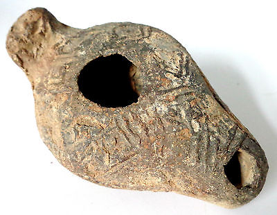 Title (ebay affiliate link): Beautiful Roman patterned terracotta oil lamp circa 4th-5th century AD