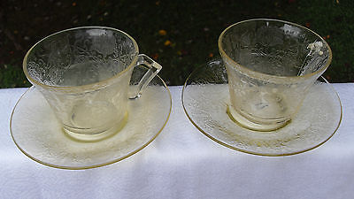 SET OF TWO (2) Depression Era Hazel Atlas Florentine Poppy Yellow Cups & Saucers