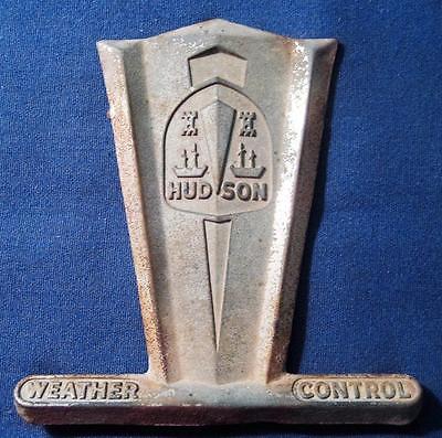 VINTAGE HUDSON AUTOMOBILE WEATHER CONTROL EMBLEM ART DECO CAR DASHBOARD BADGE