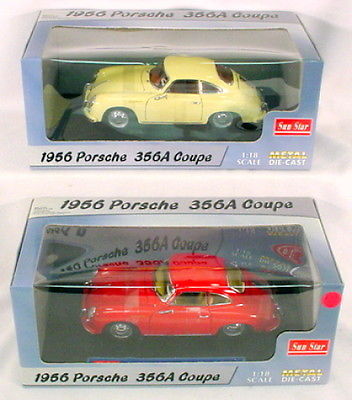Lot 2 Sun Star Die Cast Cars '56 Porsche 356A Red and Ivory 1:18 SCALE