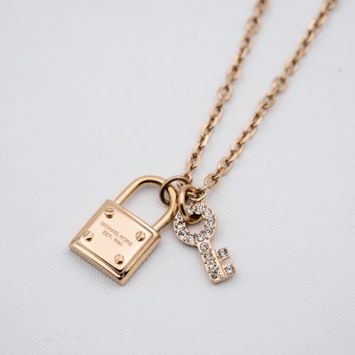 Title (ebay affiliate link): Authentic New Michael Kors Brilliance Rose Gold tone Padlock Pendant Necklace