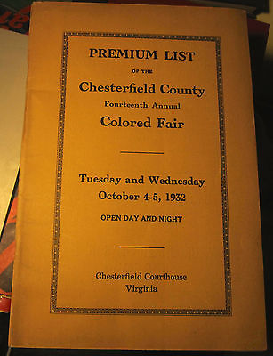 1932 Premium List Chesterfield County Colored Fair Virginia Negro Black